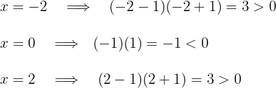 The real line is divided into three intervals from the values
