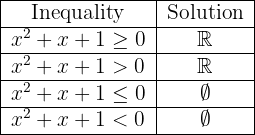 Because of this, the inequality can have as a solution all real numbers or no solution; if the sign of the quadratic term does not coincide with that of the inequality, it has no solution.