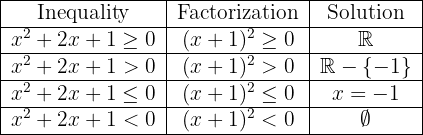 Since the quadratic expression is always positive or zero, the inequality has as a solution all real numbers