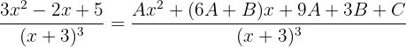 Since the denominator is a first-order polynomial to the third power, we have that in general our expression can be written as