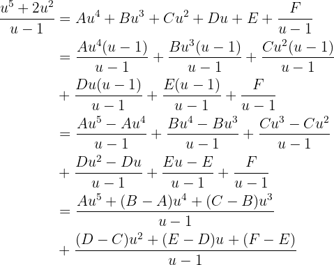 . To find the values of these unknowns we must perform the sums and then equate the coefficients of terms of the same degree, that is: