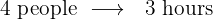 Four people cook 50 dishes in 3 hours. If one of the people gets sick, how long will it take the three people to prepare the 50 dishes?
