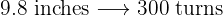 Two wheels are connected by a transmission belt. The first has a radius of 9.8 inches and the second of 29.5 inches. When the first has made 300 turns, how many turns will the second have made?