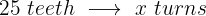 Two gears are synchronized with each other. The first has 25 teeth and the second 10. When the second gear has made 50 turns, how many turns will the first have made?