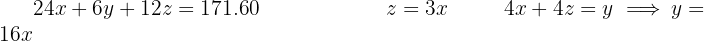 the costs of milk, serrano ham, and olive oil, respectively. We form the related system of equations and solve it.
