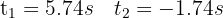 6. We take the positive time, since the negative one doesn't make sense in this problem. Thus, both particles meet at