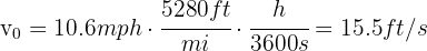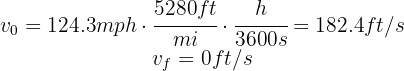 2. We verify that we have the same units. We note that the initial velocity is given in miles per hour, so we convert it to feet per second: