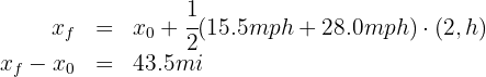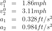 2. We verify that we have the same units. We note that the initial velocities are given in miles per hour, so we convert them to feet per second. We also convert minutes to seconds: