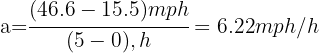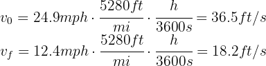 2. We verify that we have the same units. We note that the initial and final velocities are given in miles per hour, so we convert them to feet per second: